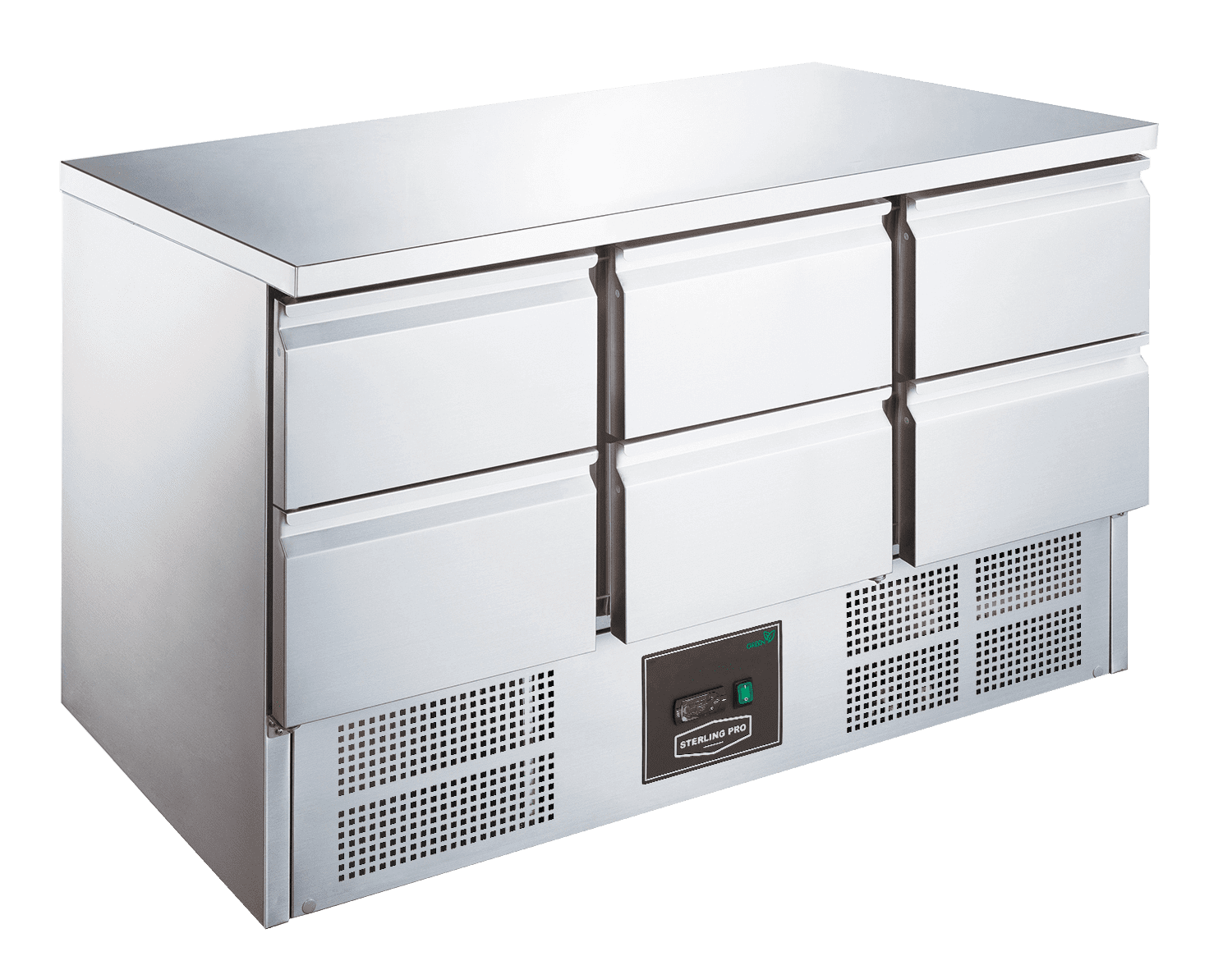 Sterling Pro Green SPI-B-180 3 Door Stainless Steel Low-Height Fridge Counter, 3 x 2/3 Drawers