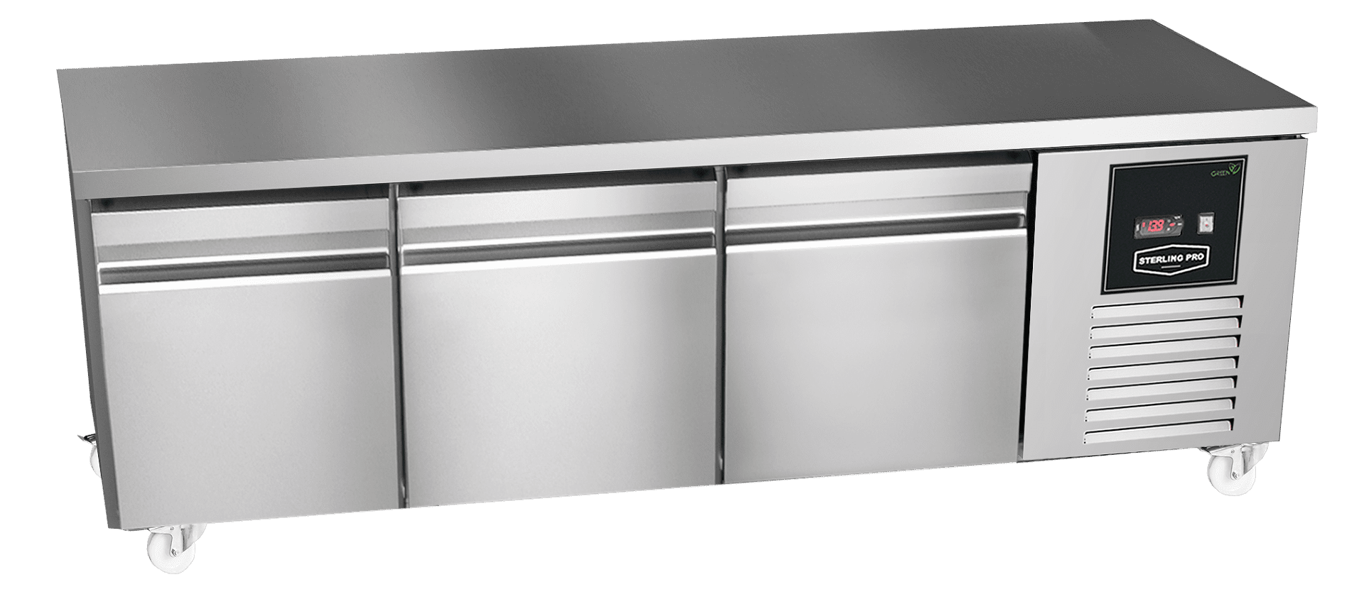 Sterling Pro Green SPI-6-200-30-NS Stainless Steel 3 Door Fridge Counter, 600mm Deep