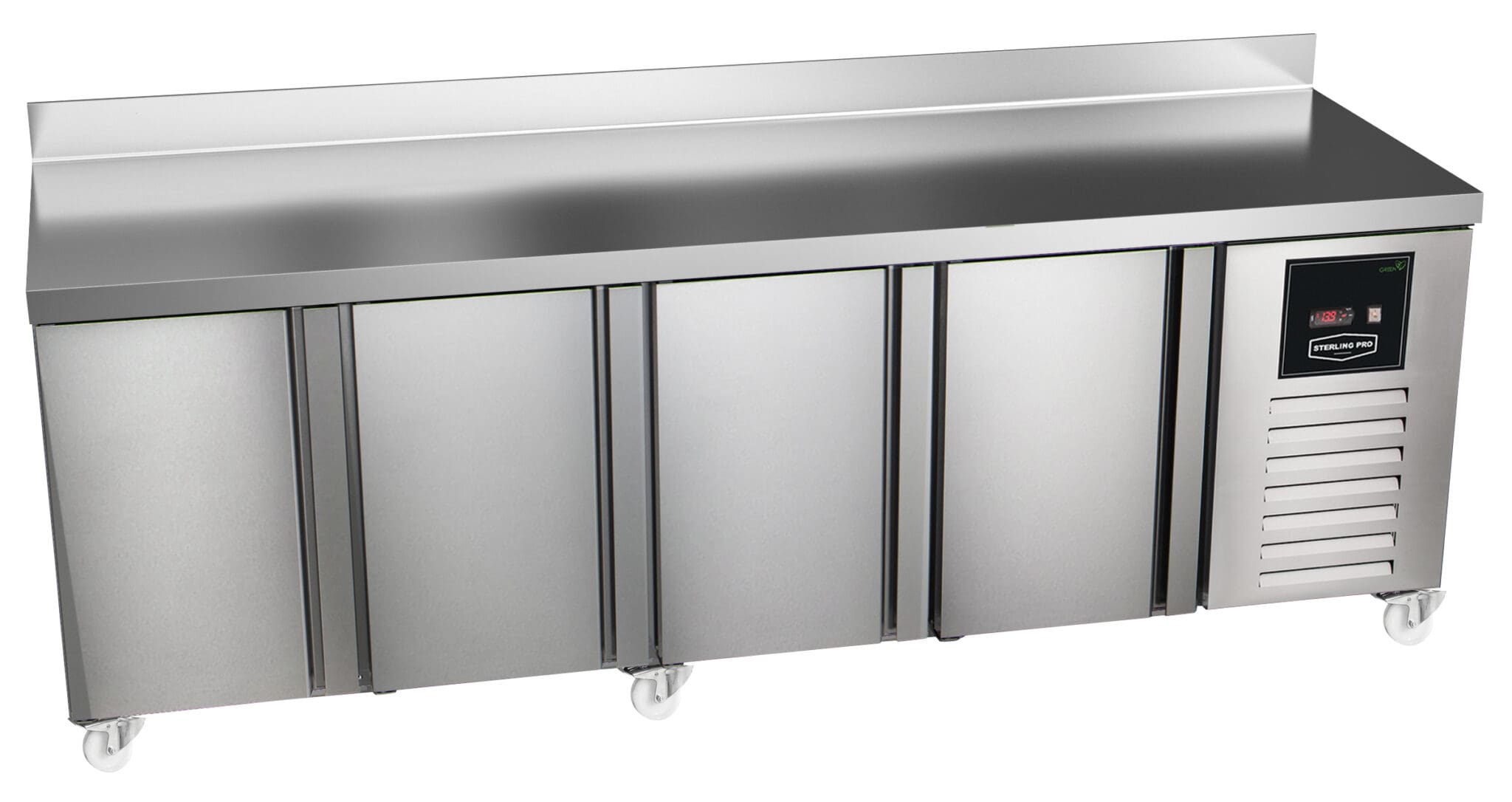 Sterling Pro Green SPI-7-180-30-SB 3 Door Counter Fridge with 100mm Splashback, 452 Litres