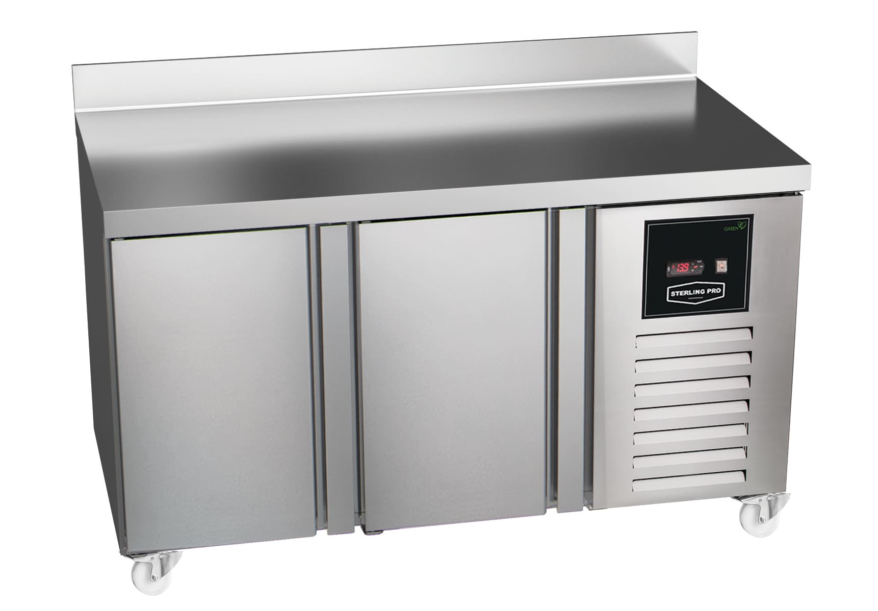 Sterling Pro Green SPI-7-135-20-SB 2 Door Fridge Counter with 100mm Splashback, 290 Litres