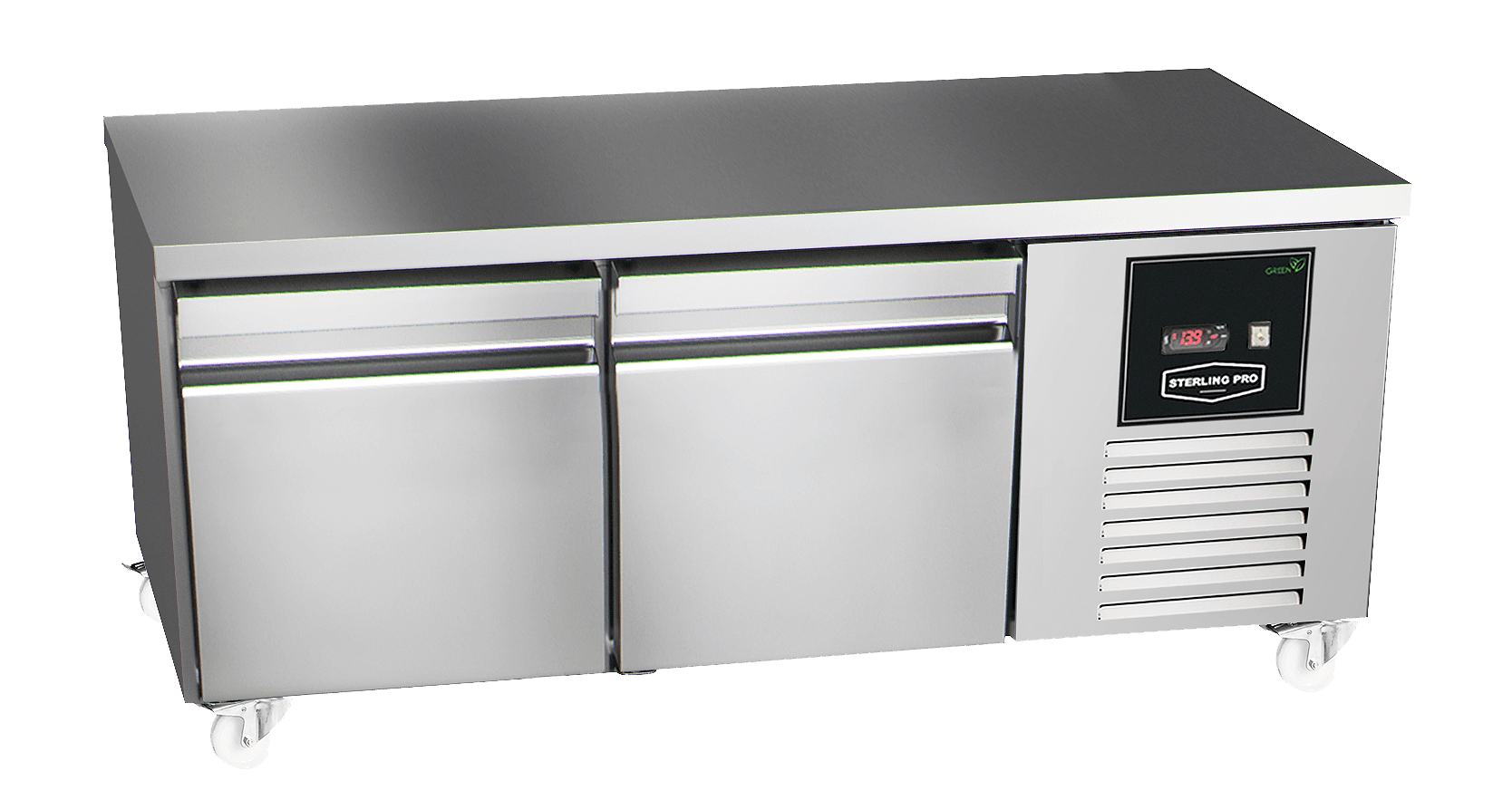 Sterling Pro Green SPI-B-135 2 Door Stainless Steel Low-Height Fridge Counter, 2 x 2/3 Drawers